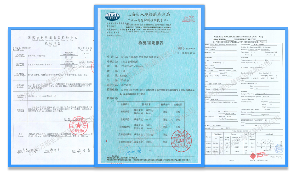 我們嚴(yán)格地運(yùn)行生產(chǎn)過程的質(zhì)量管控和成品檢驗(yàn),并擁有WPS焊接工藝評(píng)定、C4-H防腐認(rèn)證、罐體鑒定檢測(cè)報(bào)告等,確保給客戶提供高品質(zhì)、高性能的產(chǎn)品